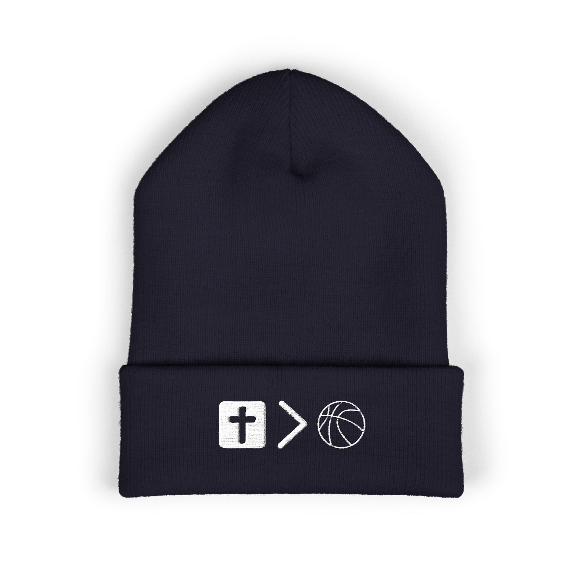 Jesus is bigger than Basketball Cuffed Beanie — Knit Winter Hat